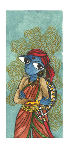 Malvika Raj is a self-taught artist and visual storyteller working predominantly with Madhubhani art, a form associated with her home state of Bihar. While traditional iterations of Madhubhani artwork are steeped in Hindu cosmology and mythological world-building, Malvika has radically re-interpreted the form by drawing it away from the mythical to the material. Her work stands firmly rooted in the experiential realities of Dalits and their lifeworlds.